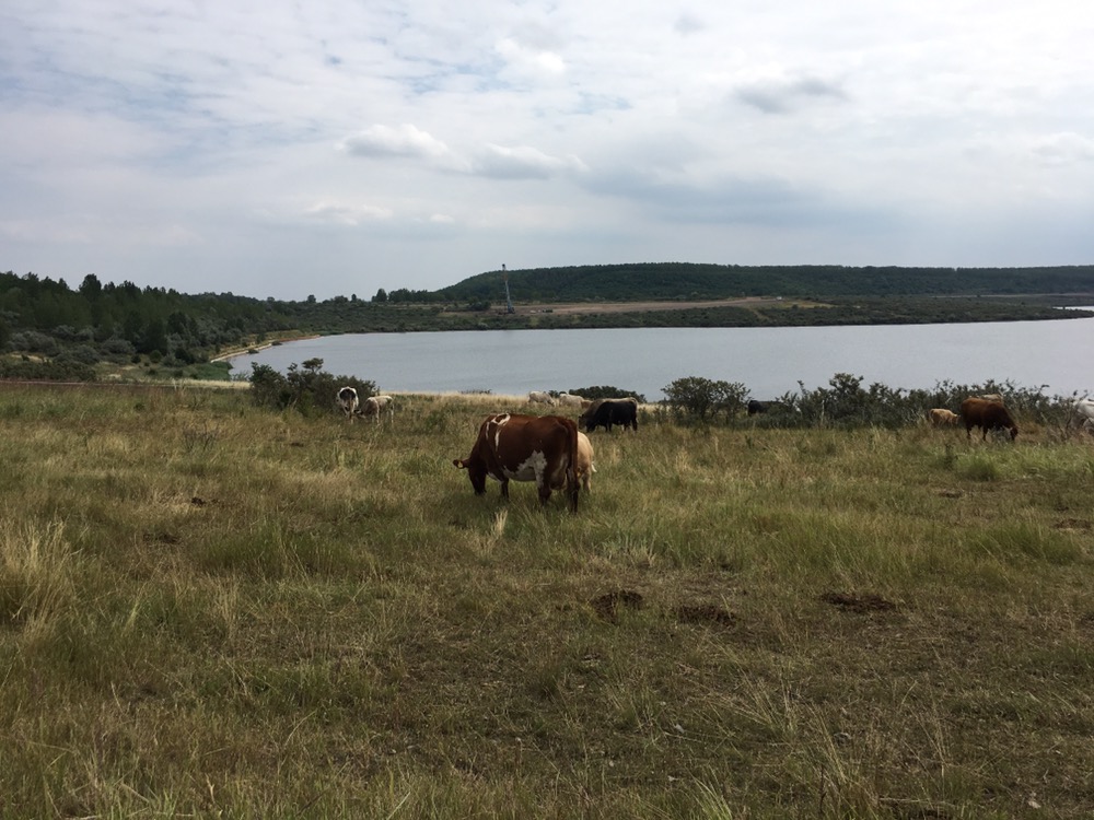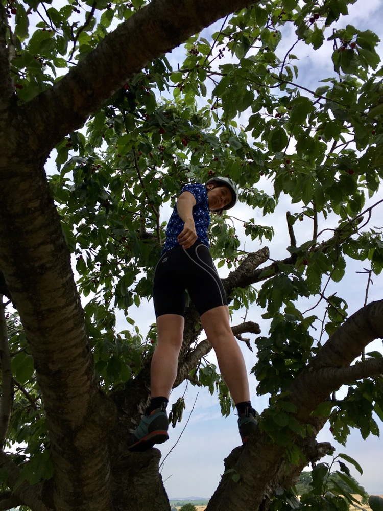 Vanochtend na het verlaten van Meisdorf kwamen we op een verlaten landweggetjes kersenbomen tegen. De kersen waren veelal een beetje overrijp of rot, maar er zaten ook nog lekkere tussen. Christel moest natuurlijk in de boom klimmen omdat daar de beste kersen hingen. Na uit de Harz ‘afgedaald’ te zijn ging de route door slapende dorpjes verder. Eigenlijk best fijn zo’n afwisseling van landschap. Het landschap werd nu licht golvend met weidse gezichten over goudgele graanvelden. In de dorpjes wel vaak nog authentiek wegdek, d.w.z. schlechte tot zeer slechte kinderkoppen. Lekker stuiteren! In één van die dorpjes hebben we broodjes en beleg gekocht dat we later aan het Concordiameer nuttigden. Dit meer is ontstaan door mijnbouwwerkzaamheden. Het meer zelf is niet toegankelijk vanwege aardverschuivingen in het recente verleden maar langs de noordkant loopt wel een aardig fietspad dat onderdeel is van de R1.
