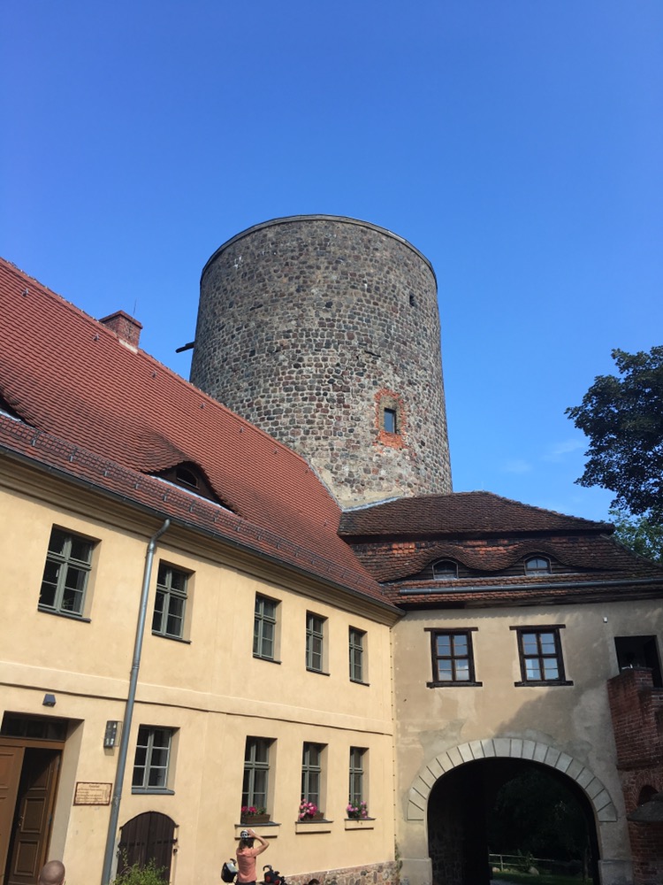 Na Wittenberg vervolgden we de route heel fraai door de heuvels van de Fläming (eigenlijk een stuwwal), een afwisseling van bos, graanvelden en overige landelijke omgeving. Middenin dit gebied bezochten we Burg Rabenstein voor wat te drinken en te eten (Kuchen) en een bezoek aan de stoere toren. Daarin een leuk soort mini-museum en vanaf de toren fraaie vergezichten over de Fläming.