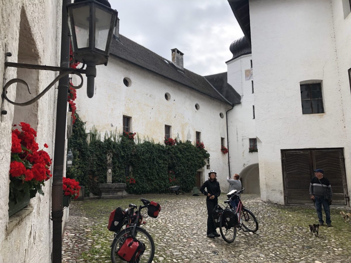 Het eerste stuk van de route kende, op het begin na, weinig hoogtemeters, dus we konden lekker warmdraaien tot in Traunstein. Dat bleek een alleraardigst plaatsje dat ooit belangrijk was in de zoutverwerking. Tussen Traunstein en Teisendorf ging het vervolgens continu op en neer. Wel een heel mooi stuk over rustige wegen, maar we waren in Teisendorf wel echt toe aan onze lunchpauze. Natuurlijk bij een bakkerij. Helaas met erg vervelende wespen, totdat iemand vlakbij ging roken. Elk nadeel heb z’n voordeel!