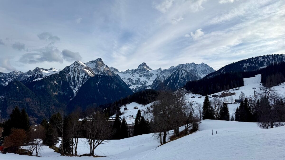 Vandaag was het nog geen 2,5 uur rijden naar Zimbapark in Bürs, bij Bludenz. Een groot overdekt winkelcentrum waar we afgelopen zomer ook al eens waren, toen vanuit Montafon. Het doel was praktisch: Grödel (spikes) voor Christel en een zonnebril voor mij kopen. Geslaagd! Na de lunch reden we nog een kwartier verder, flink omhoog over een bochtige en deels smalle weg, naar ons hotel Schillerkopf boven Bürserberg.
